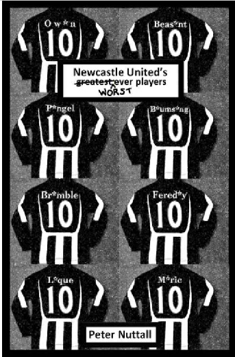 Relive all your least favourite Newcastle United moments by taking a journey back through the labyrinth of frustration, disillusionment and failure that is Newcastle United’s worst ever players. Grimace, cringe and wince as you take a trip down the derelict end of memory lane, through a history of Newcastle United’s most inept, incompetent and overpaid exponents of the beautiful game. Players who panicked whenever the ball came within twenty yards of them, players who would struggle to make the bench for St. Joseph’s School under 7’s team and players who surprised you by managing to put their boots on the right feet.